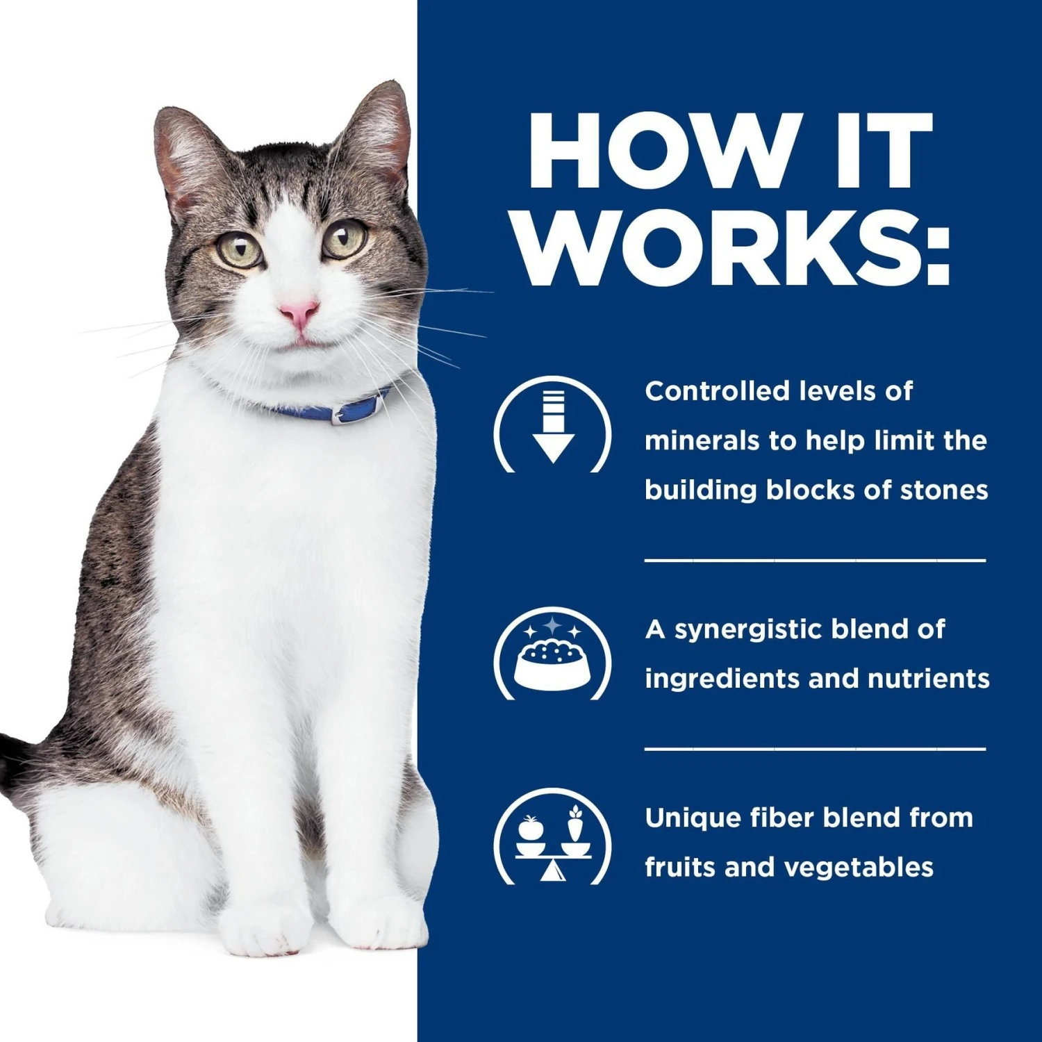 - Helps dissolve struvite stones in cats.