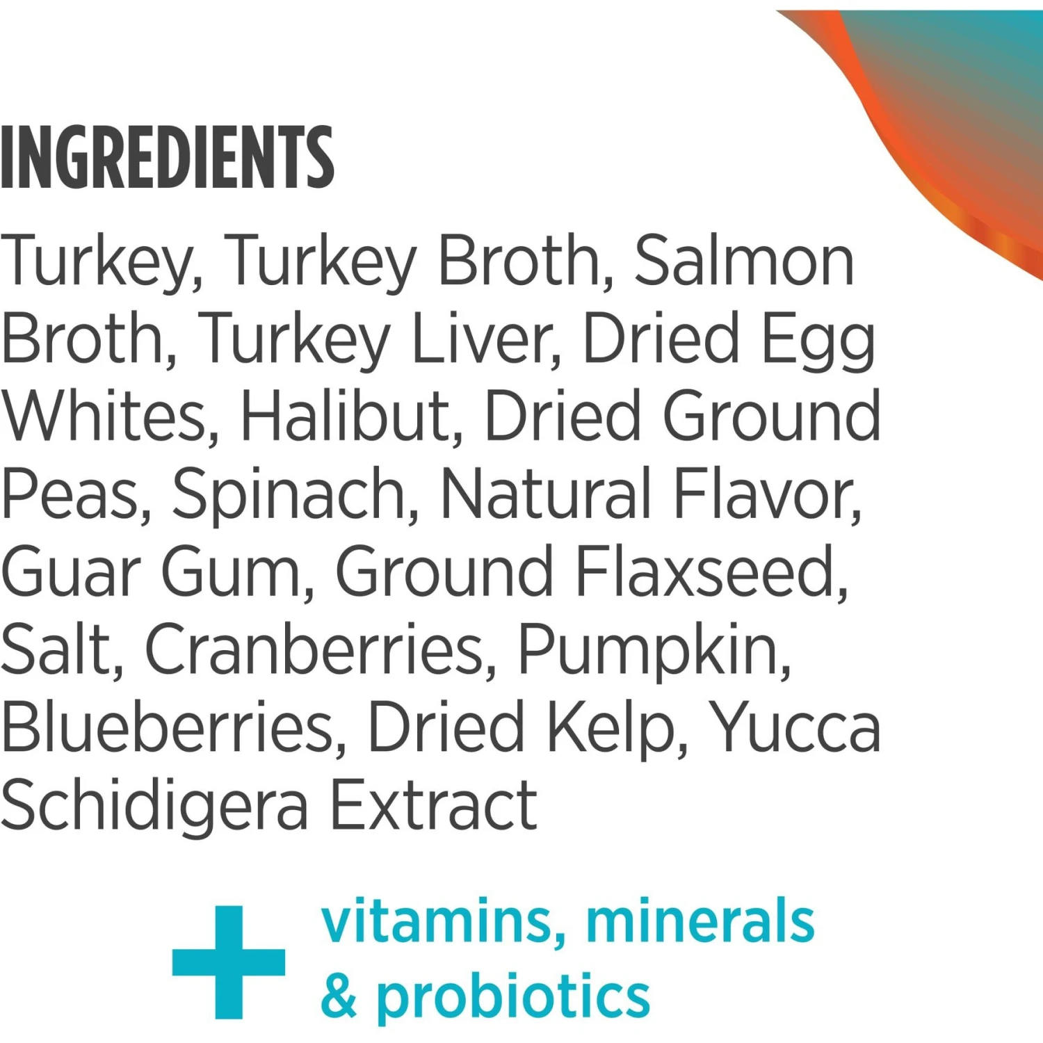 - Complementary protein duo features turkey and halibut as top ingredients for the animal protein and flavor your little carnivore craves.