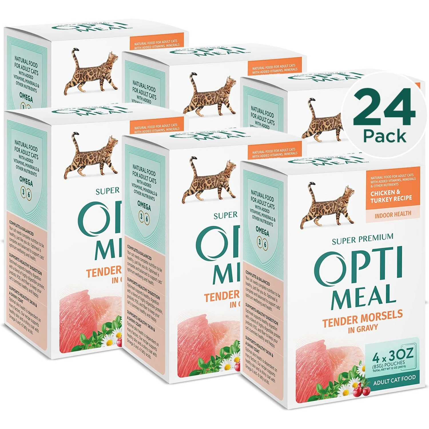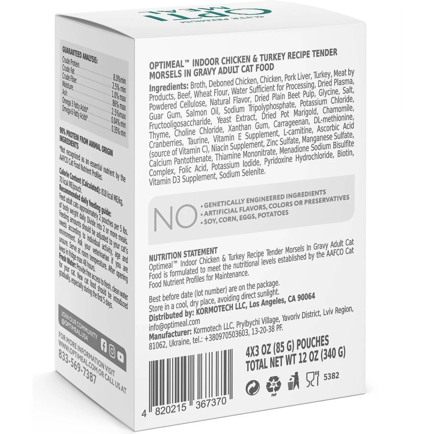 - Tender morsels of chicken and turkey in a savory gravy offer complete and balanced nutrition for your kitty.
