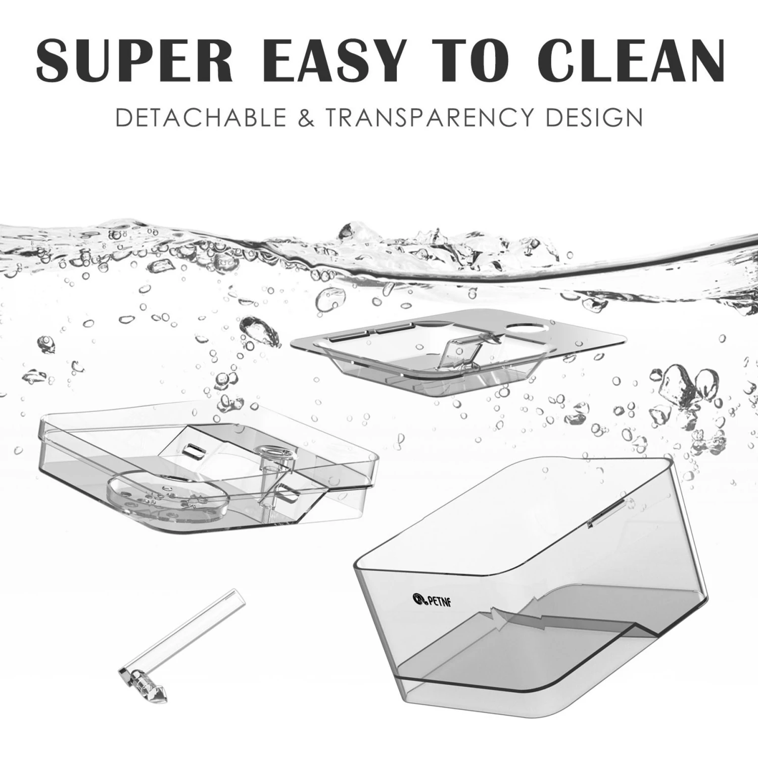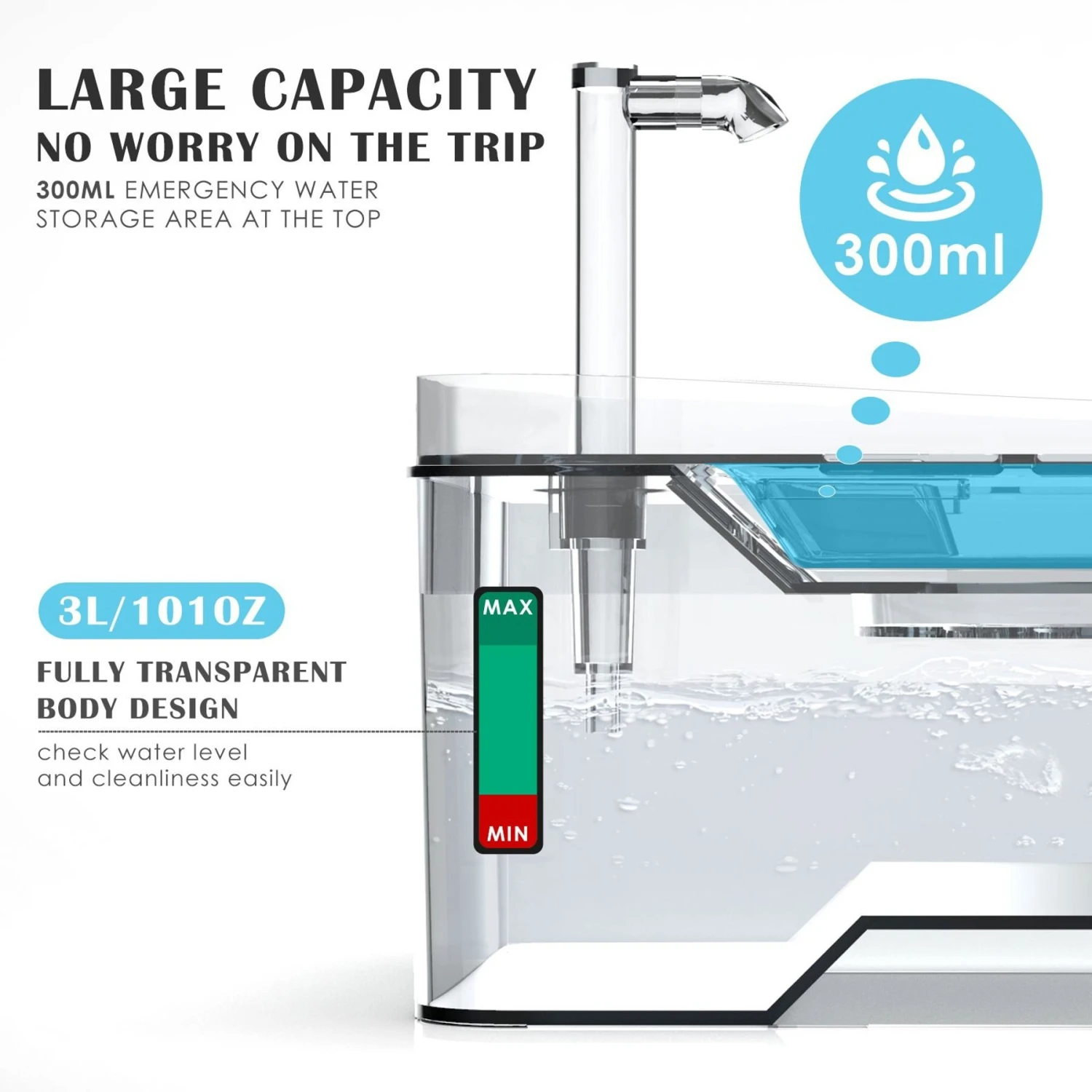 - Features transparent tank for visible water-levels and an ultra-quiet pump.