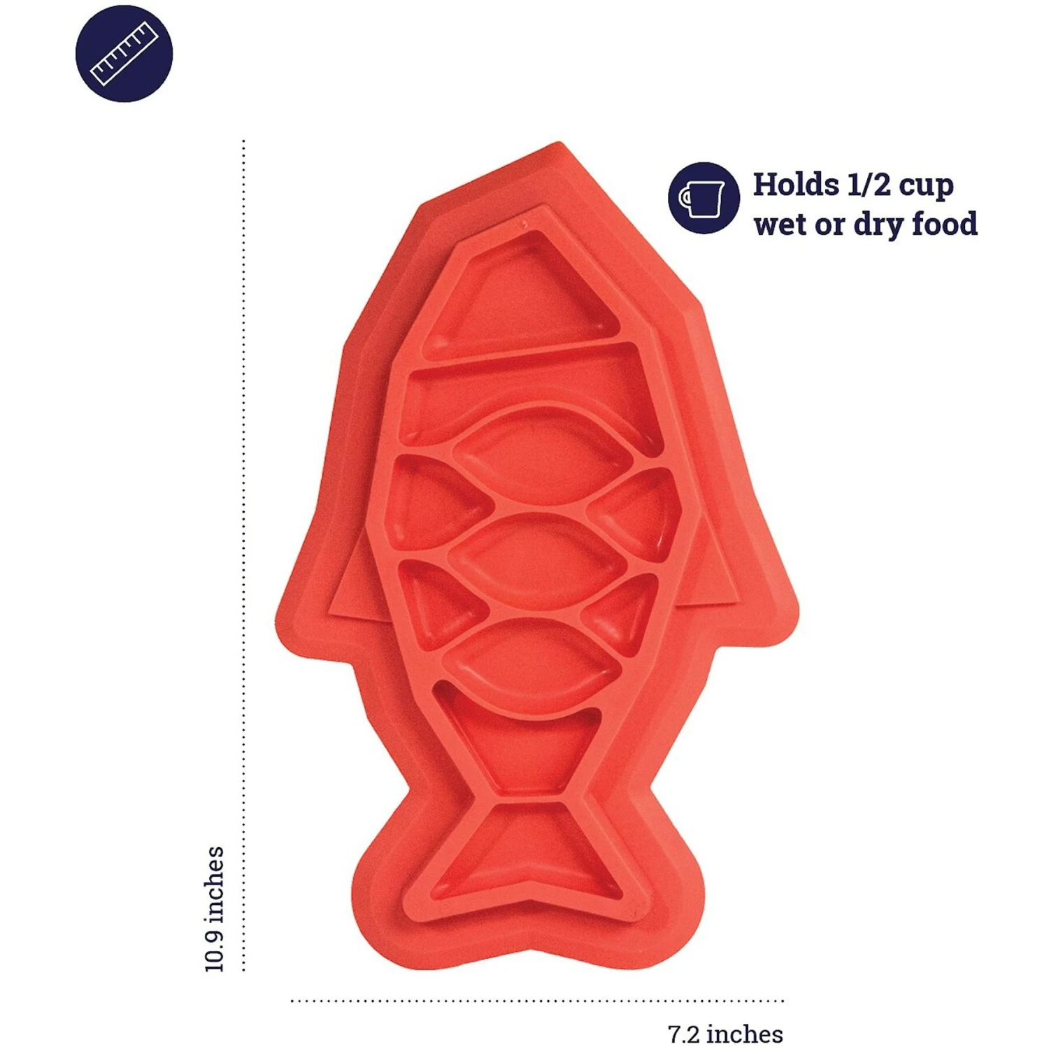 - Can hold up to a half a cup of wet or dry food.