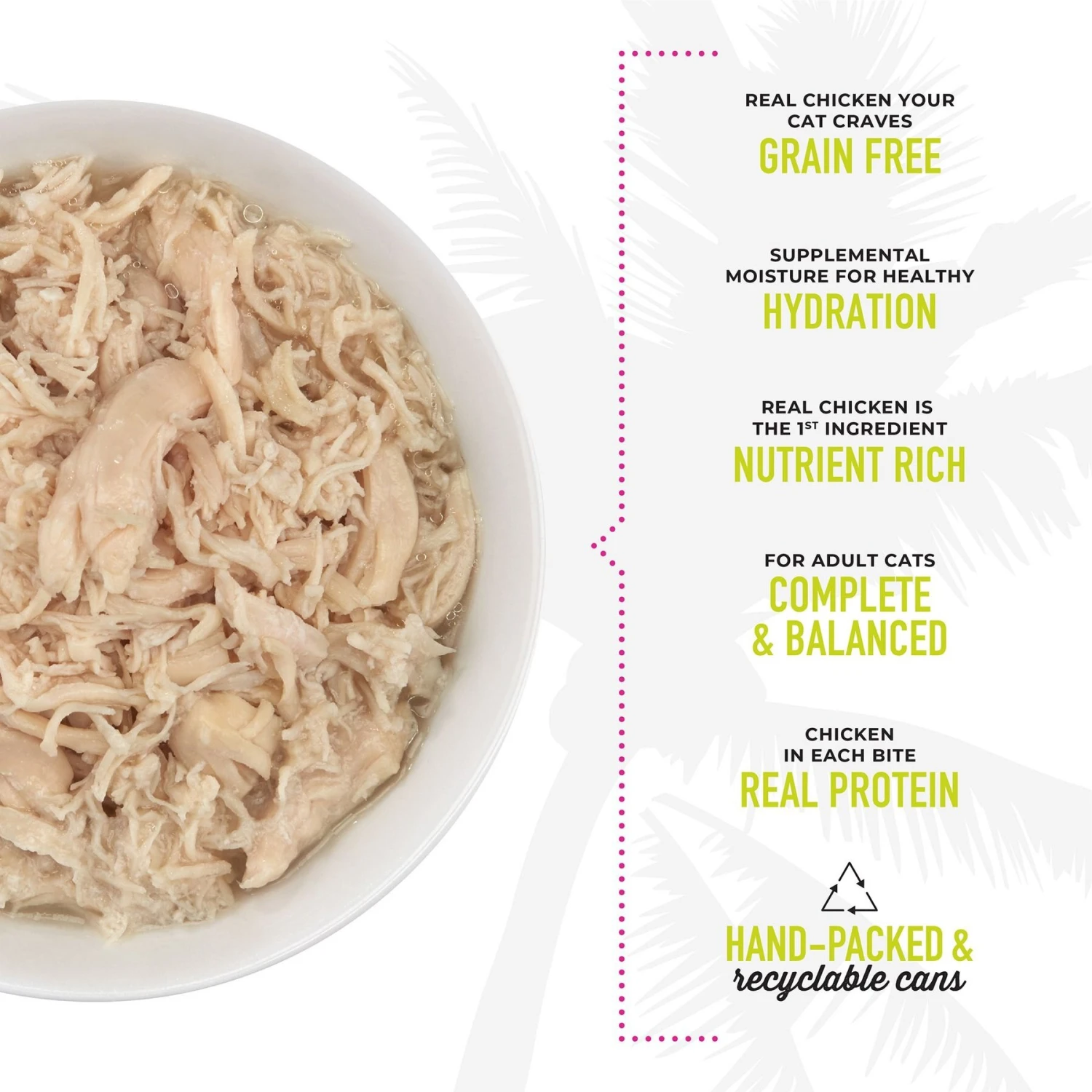 - Hormone and antibiotic-free shredded chicken as the first ingredient for animal-sourced protein to meet the nutritional needs of carnivores.