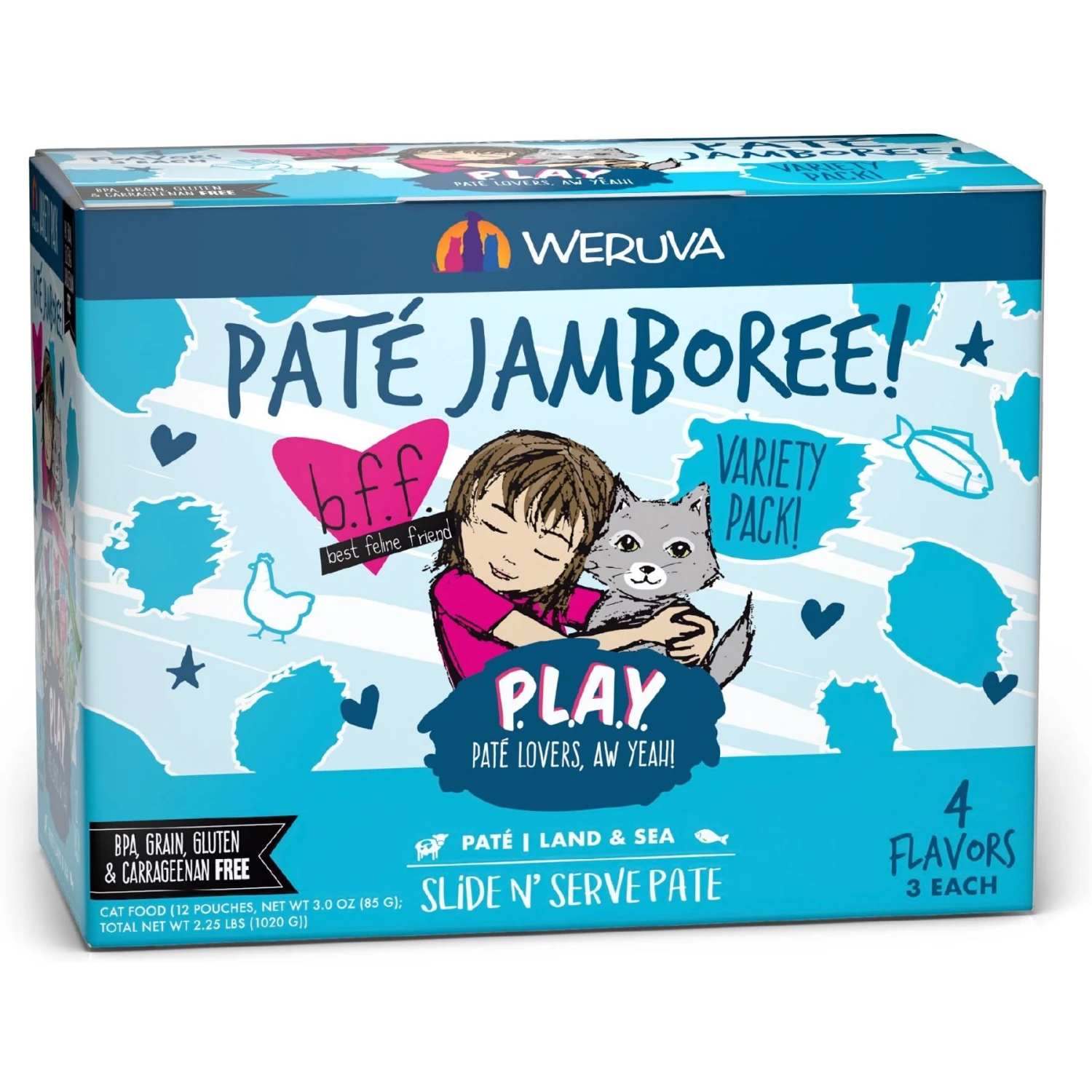 Be the first to review “Weruva Best Feline Friend Paté Lovers, Aw Yeah! Paté Jamboree! Variety Pack Grain-Free Wet Cat Food, 2.8-oz Pouch, Case Of 12 & BFF Play Pate Lovers Pate Partay Variety Pack Wet Cat Food, 3-oz Pouch, Pack Of 12” Cancel reply