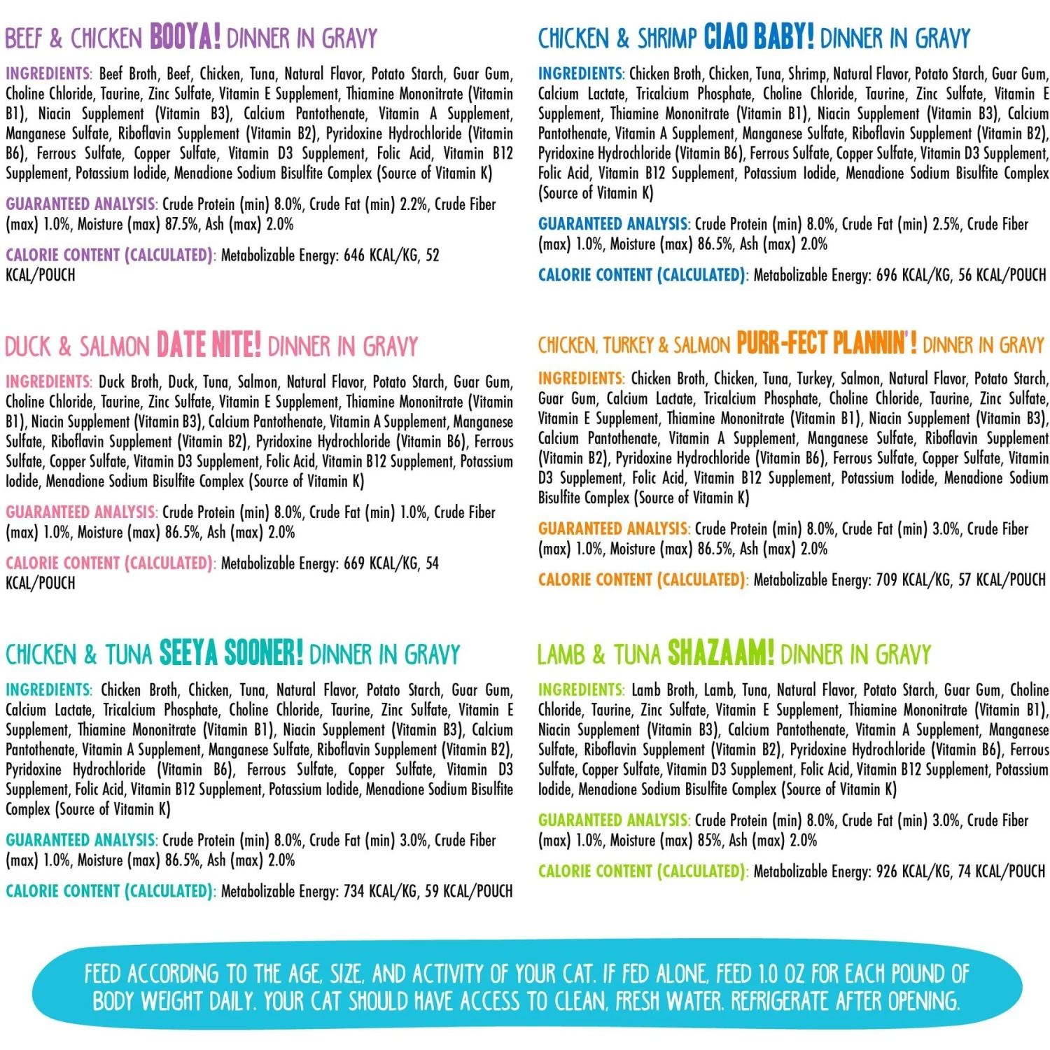 - Grain-free wet food variety pack with real meat including duck, salmon, lamb, tuna, chicken, turkey and more.